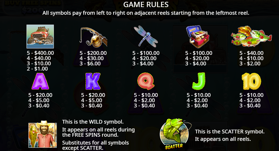 FeaturesScatter-triggered Free Spins, Fisherman Wild, Money-symbol fish, Multipliers, Bonus modifiers